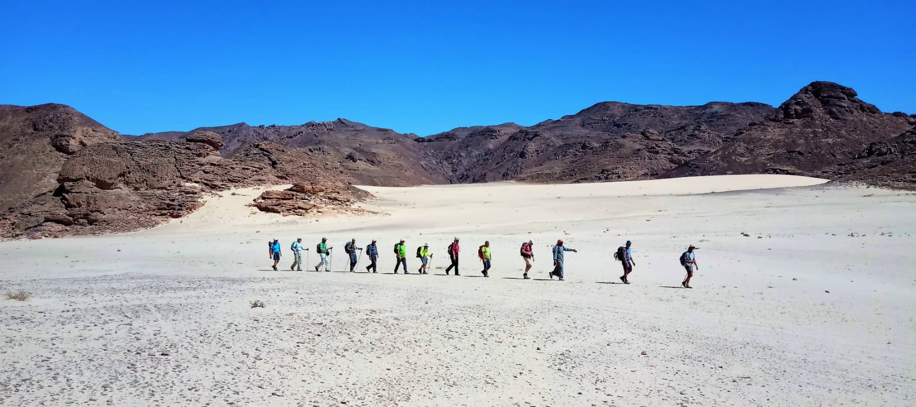 אנחנו יוצאים לטיול בן חמישה ימים בקניוני אבן החול של מזרח סיני, אל מעברי הרים מדהימים, אל הליכה בחולות, ואל גילוי מעיינות ונאות מדבר. טיולנו יתחיל בוואדי ע'זאלה שכולו חולות, ממנו נמשיך אל נאת המדבר של עין חודרה, נתרשם מעוצמתו של ג'בל ברקה המרכזי, נתפעל מנאת המדבר הענקית עין אום אחמד, נקיף את ג'בל ברקה הצפוני ונסיים בקניון הצבעים ו-ואדי מלחה.