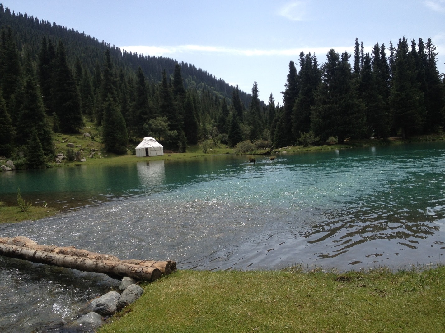 נתעורר לנוף הכי יפה בעולם, נביט דרומה ונצפה במראה בו האגמים משקפים גוונים כמעט סוריאליסטיים של טורקיז וכחול, ומלאים בהשתקפויות של ההרים שמסביב. הנופים, האור והצבע יהיו ככל הנראה השיא הוויזואלי של הטרק הראשון. אחרי שנעזוב את סביבתם נרד מזרחה, נחצה אוכף בראש השלוחה שמפרידה בנינו ובין הפאס של בוז אוצ'וק בגובה של 3362 מטר. נטפס אליו במתינות ונרד מעברו השני. מראות עמק טורגון אק סו (Türgön Ak-Suu) יפתחו מולנו במלוא הדרם. העמק הרחב ביותר ברכס משמש גם כציר שהוביל בתקופה הסובייטית לעיירת הכורים אינלצ'ק שיושבת הרחק בסמוך לגבול הסיני. נכנס שוב לאזור המיוער ונתגלגל מטה. נחצה את הנהר על גשרון עץ כשמיד לאחריו נפגוש את הרכב המשותף. כשנצא מהעמק המרשים נמשיך בנסיעה כשבשעות אחר הצהריים נגיע חזרה אל העיר קרקול, שם נהנה מחדש ממקלחת חמה.