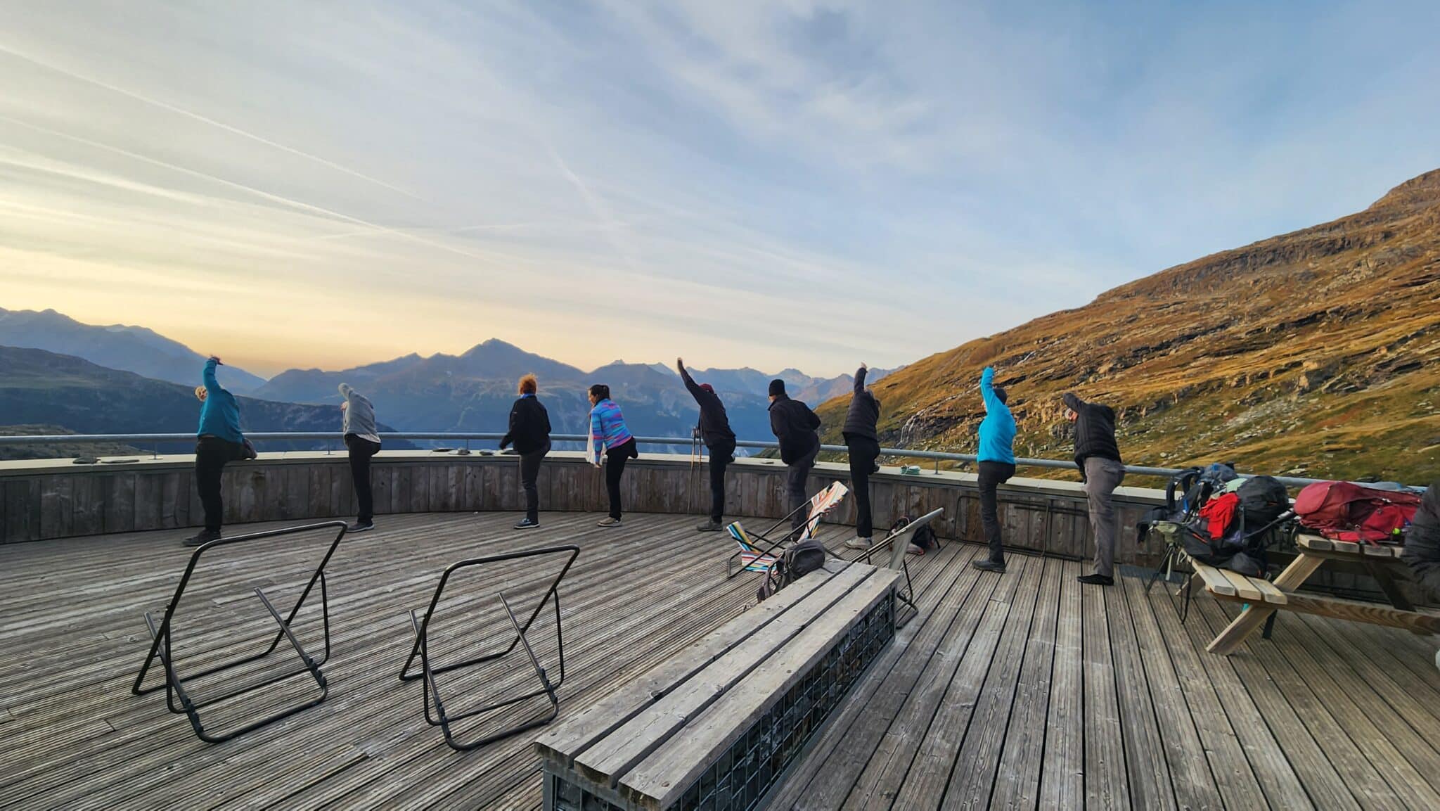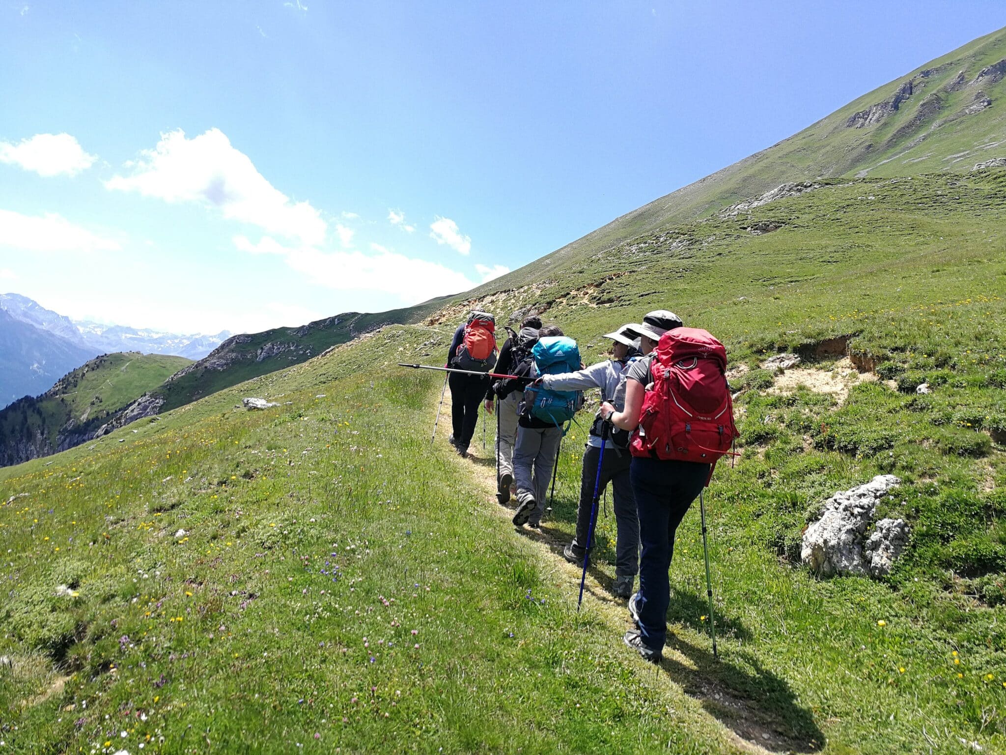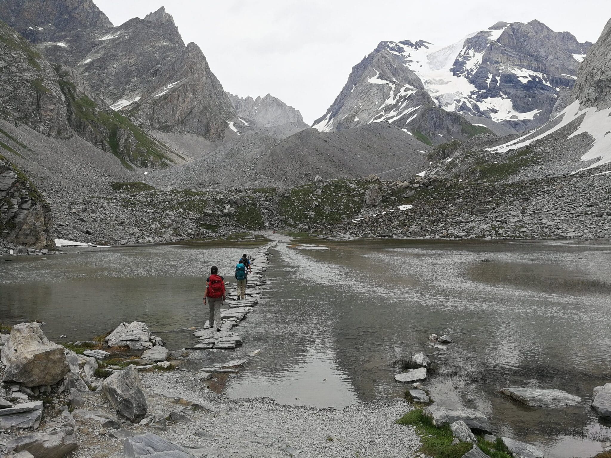 נצא מהבקתה בירידה נוחה על דרך עפר נוחה לאורך נהר שזורם בשצף, פרות באחו ונוף כמו מגלויה שוויצרית. נעבור בין הכפרים הקטנים ונמשיך אל עבר עיירה קטנה ומקסימה בה נוכל לנוח קצת, לשתות קפה טוב ולטעום מאפה מקומי לפני שנתחיל את העליה של היום אל עבר הפס הבא. נעלה בעמק ונחצה את אחד הנחלים השוצפים שמתחיל בקרחונים שלמעלה. באמצע העליה נגיע אל אחת התמונות שהכי מזוהות עם המסלול – שביל האבנים שחוצה את האגם. מכאן נמשיך בעליה תלולה אך נוחה דרך אגמים אלפינים ונוף עוצר נשימה, קרוב קרוב אל הקרחונים, כשרגע לפני הפס תחכה לנו הבקתה שלנו להלילה. הבקתה חדשה כמעט לגמרי וממוקמת באזור יוצא דופן בנוף שלו, מוקפת אגמים אלפינים, פסגות לבנות וקרחונים – לא כל יום ישנים במקום גבוה כל כך ממש בלב ההרים.